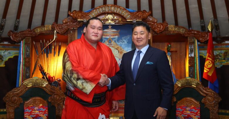 Мэргэжлийн сүмогийн дэвжээнд амжилттай барилдаж, эх орныхоо нэрийг өндөрт өргөж буйд талархаж буйгаа Монгол Улсын Ерөнхийлөгч илэрхийлэв.