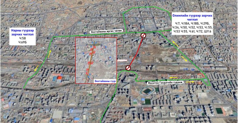Иймд иргэд та бүхэн доорх зураглалын дагуу зорчино уу.