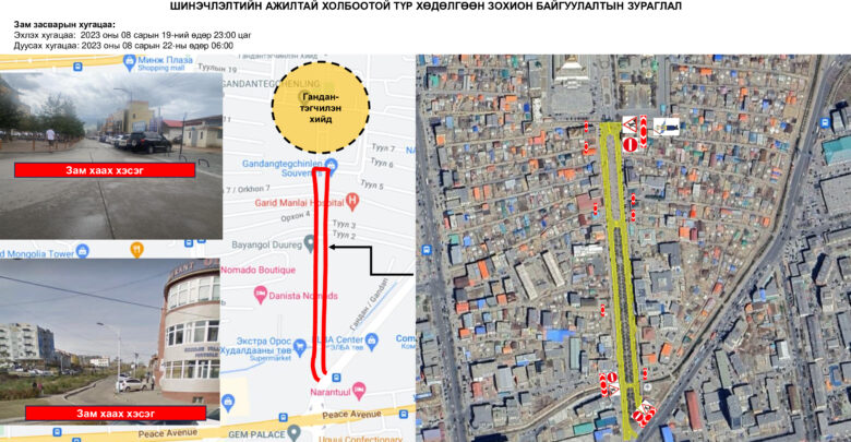 Иймд дээрх хугацаанд иргэд, жолооч та бүхэн бусад замыг сонгон, замын хөдөлгөөнд оролцоно уу.