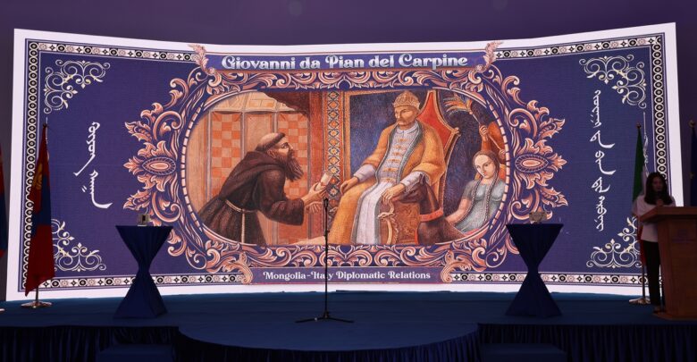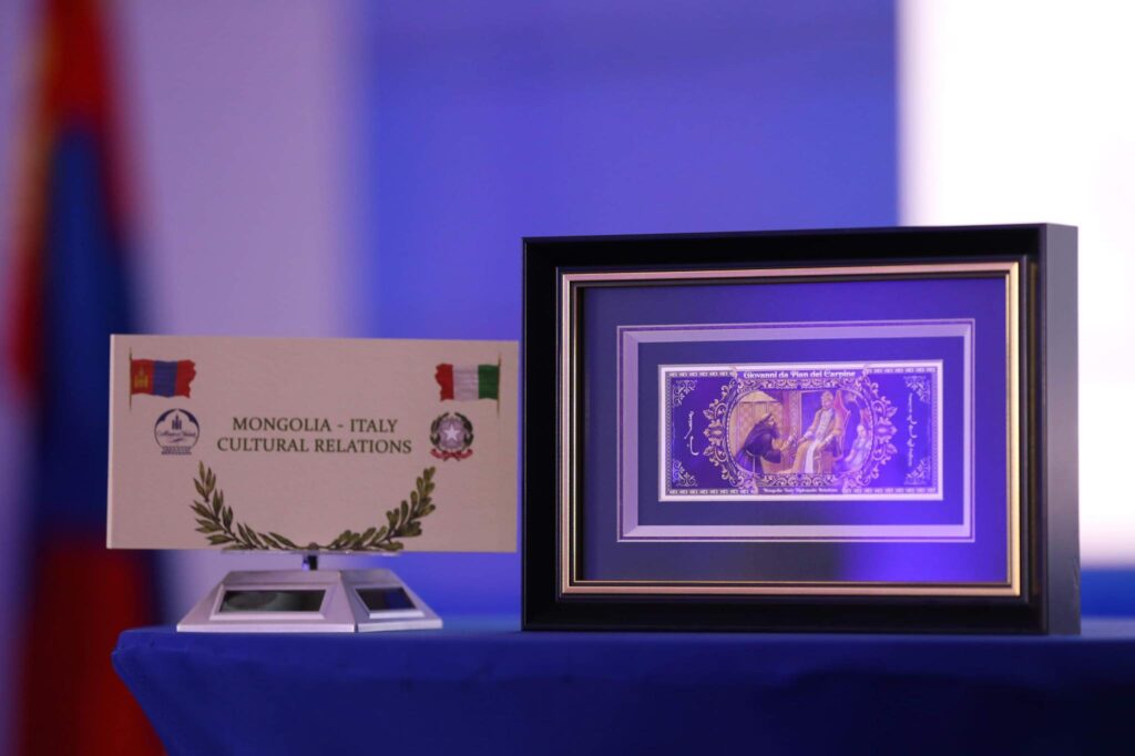 Монголбанкны Ерөнхийлөгч Б.Лхагвасүрэн энэ үеэр хэлсэн үгэндээ “Монгол Улс, Итали улсын хоорондын дипломат харилцаа нь өнө эртний түүхтэй бөгөөд 1246 он буюу Монголын эзэнт гүрний үед IV Пап Инночензогийн илгээсэн захидлыг Италийн Дипломат элч Жиованни Пиан Дэл Карпини Гүюг хаанд бараалхан гардуулж байсан түүхтэй.