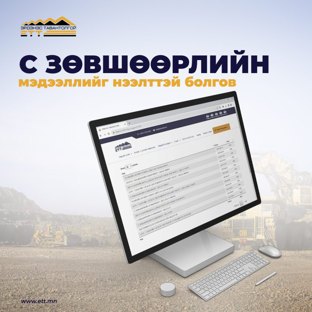 Ил тод, нээлттэй болгох ажлын хүрээнд “Эрдэнэс тавантолгой” ХК-ийн уурхайгаас ачигдсан болон хилээр гарсан нүүрсний тоо хэмжээ, худалдан авагчийн мэдээллийг жил, улирал, сар, өдрөөр нь харах боломжтой болов. Мөн нүүрс худалдан авахаар гэрээ байгуулсан бүх аж ахуйн нэгжийн мэдээллийг байгууллагын албан ёсны вэб сайтын “НЭЭЛТТЭЙ УУРХАЙ” цэсэнд https://ett.mn/mn/file-viewer/4869?full-screen=true байршуулав.