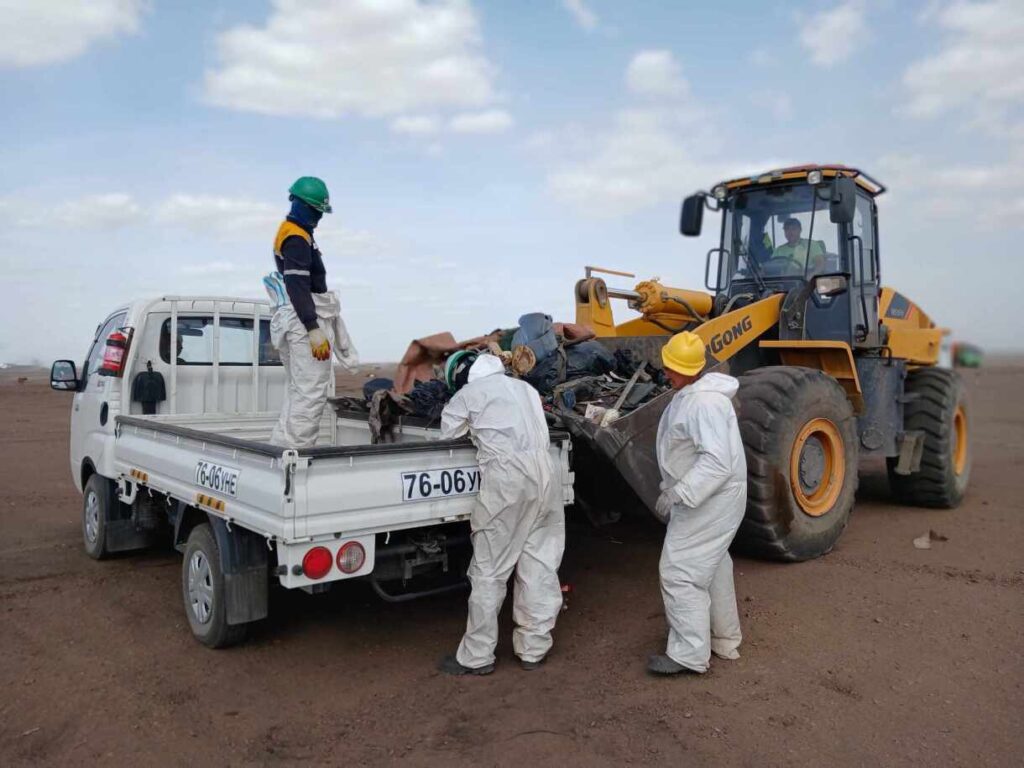 “Эрдэнэс Тавантолгой” ХК-иас Тавантолгой-Гашуунсухайт чиглэлийн 0-8 дахь км хүртэлх автозамын дагуух үүссэн хур хог хаягдлыг цэвэрлэх асуудлыг Байгаль орчин, аялал жуулчлалын сайд Б.Бат-Эрдэнэ “Монголын Уул уурхайн Үндэсний Ассоциаци-тай хийсэн уулзалтын үеэр хөндөж, санаачилга гаргаснаар уг ажил үр дүнд хүрлээ.