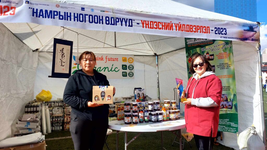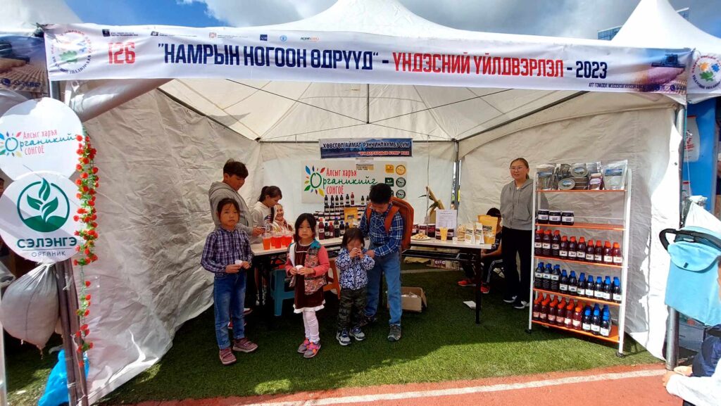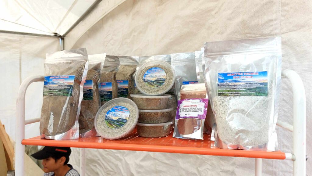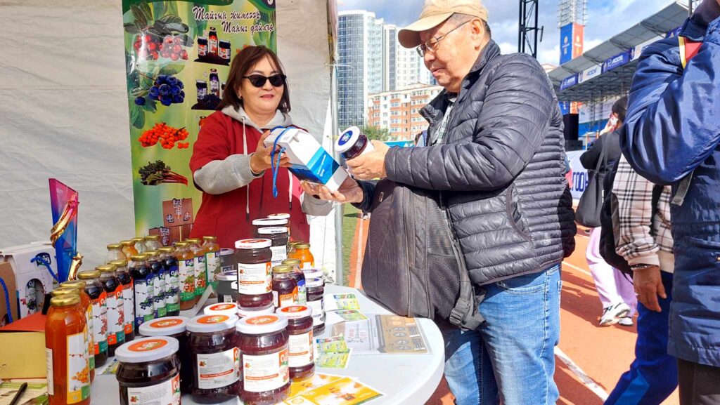 Тэдний нэг Хөвсгөл аймаг байгалийн жимс, жимсэн бүтээгдэхүүн, ургамлын гаралтай цай, ханд, бэлдмэл зэрэг байгалийн онцлогоо илтгэсэн бараа бүтээгдэхүүнээ худалдаалж буй. Мөн нутгийн ахуйн онцлогоо дагаад цаа бугын эврэн болон арьсан эдлэл, хөх сарлагийн хөөврөн бүтээгдэхүүн, гар урлалын бүтээгдэхүүнүүдээ авчирчээ. Тэд органик бүтээгдэхүүнээ нийслэлчүүддээ танилцуулж байгаагаа ярилаа.