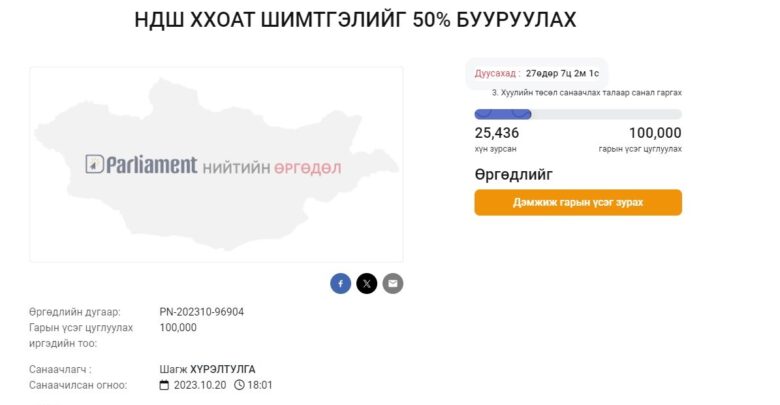 Тэгвэл иргэн Ш.Хүрэлтулга санаачилгаар уг системд НДШ, ХХОАТ шимтгэлийг 50% бууруулах талаар иргэдээс санал авч эхэлсэн байна.