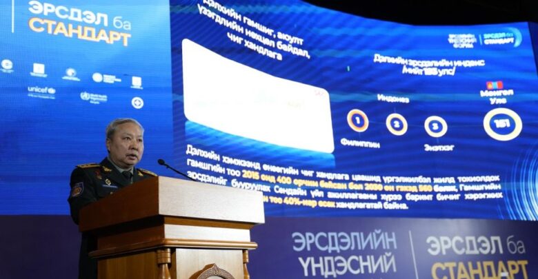 ОБЕГ-ын дарга, хошууч генерал Г.Ариунбуян “Гамшгийн эрсдэлийн өсөлт” илтгэлийг Эрсдэлийн үндэсний форумын үеэр танилцууллаа.