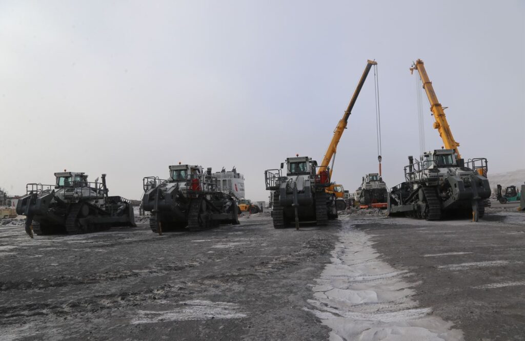 “Эрдэнэс Тавантолгой” ХК-ийн хамт олон /2023.12.18/ компанийн “А6-20” бизнес төлөвлөгөө 2021-2025”-ын хүрээнд уулын ажлын өсөлттэй уялдуулан нэмэгдүүлж буй шинэ техникүүдээ хүлээн авлаа.