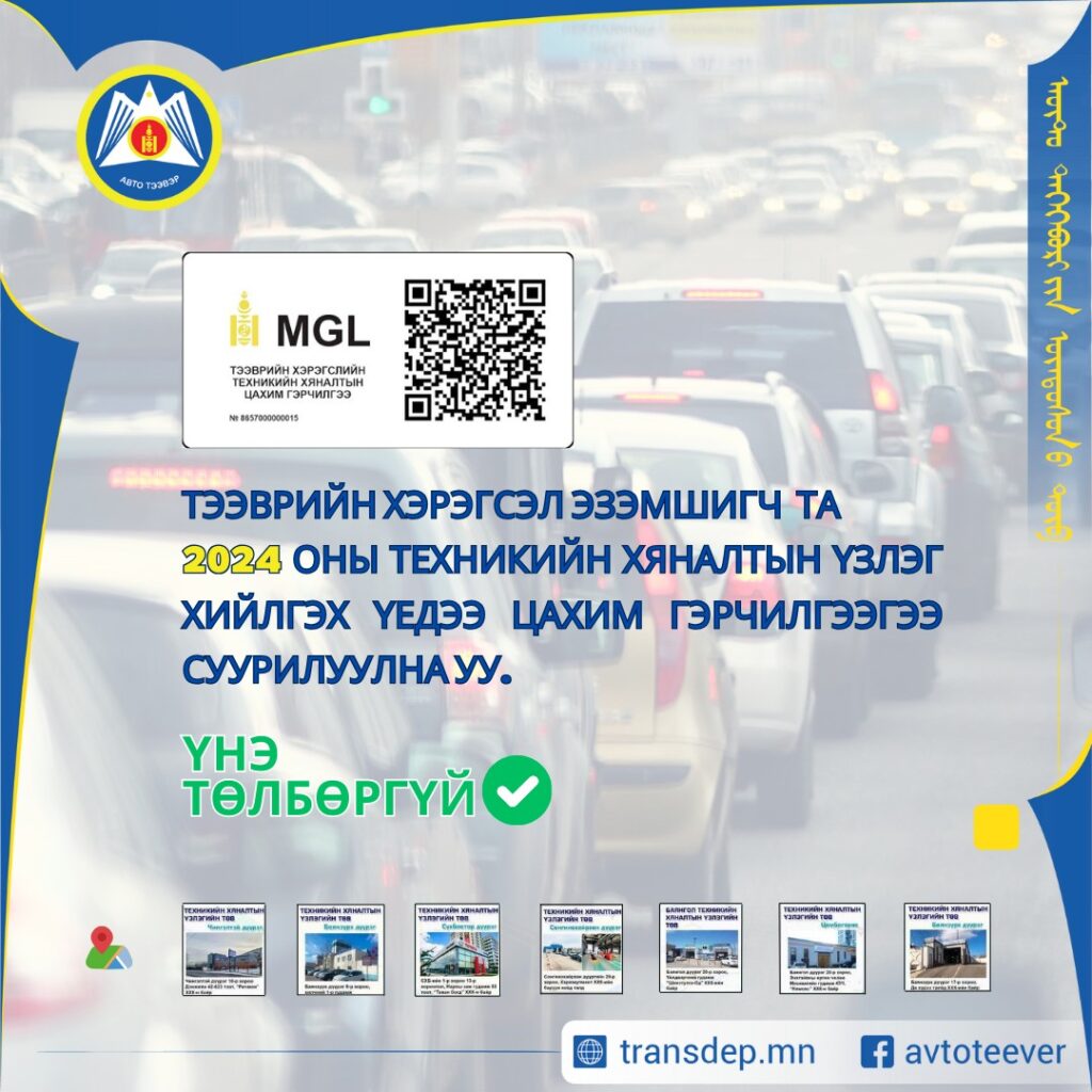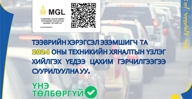 Жич: Тээврийн хэрэгсэл эзэмшигч та дараалал үүсгэх шаардлагагүй, 2024 оны техникийн хяналтын үзлэгтээ хамрагдахдаа цахим гэрчилгээг суурилуулах боломжтой