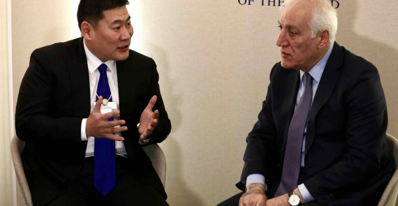 Монгол Улсын Ерөнхий сайд Л.Оюун-Эрдэнэ Швейцарын Холбооны Улсын Давос хотноо болж буй Дэлхийн эдийн засгийн 54 дэх чуулга уулзалтад оролцох үеэрээ Бүгд Найрамдах Армени Улсын Ерөнхийлөгч Ваган Хачатурянтай 2024 оны нэгдүгээр сарын 17-ны өдөр уулзлаа.