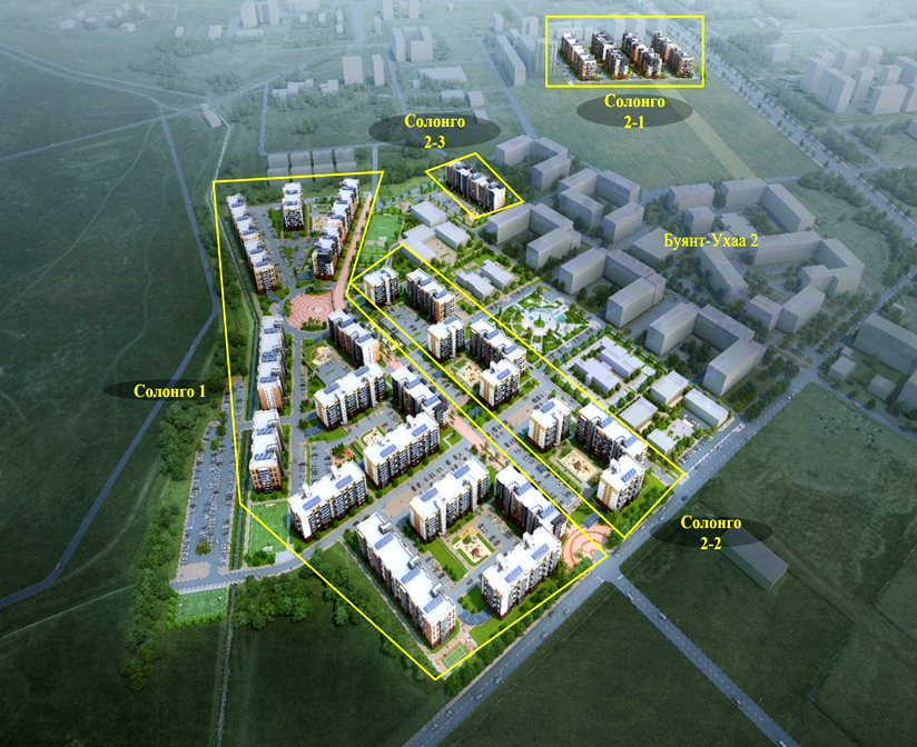 Дашрамд дурдахад “Солонго-1 (MON-18), Солонго-2 (MON-19) орон сууцны хороолол барих” төсөл нь нийслэлийн Хан-Уул дүүргийн 21 дүгээр хорооны нутаг дэвсгэрт хэрэгжих бөгөөд 17.19 га талбайд нийт 5002 айлын орон сууцны хорооллыг 2024-2027 оны хооронд барьж ашиглалтад оруулах юм. Нэгдүгээр ээлжийн 17 блокийн барилга угсралтын ажлыг энэ оны гуравдугаар сард эхлүүлэхээр бэлтгэл ажлыг хангаж байна.