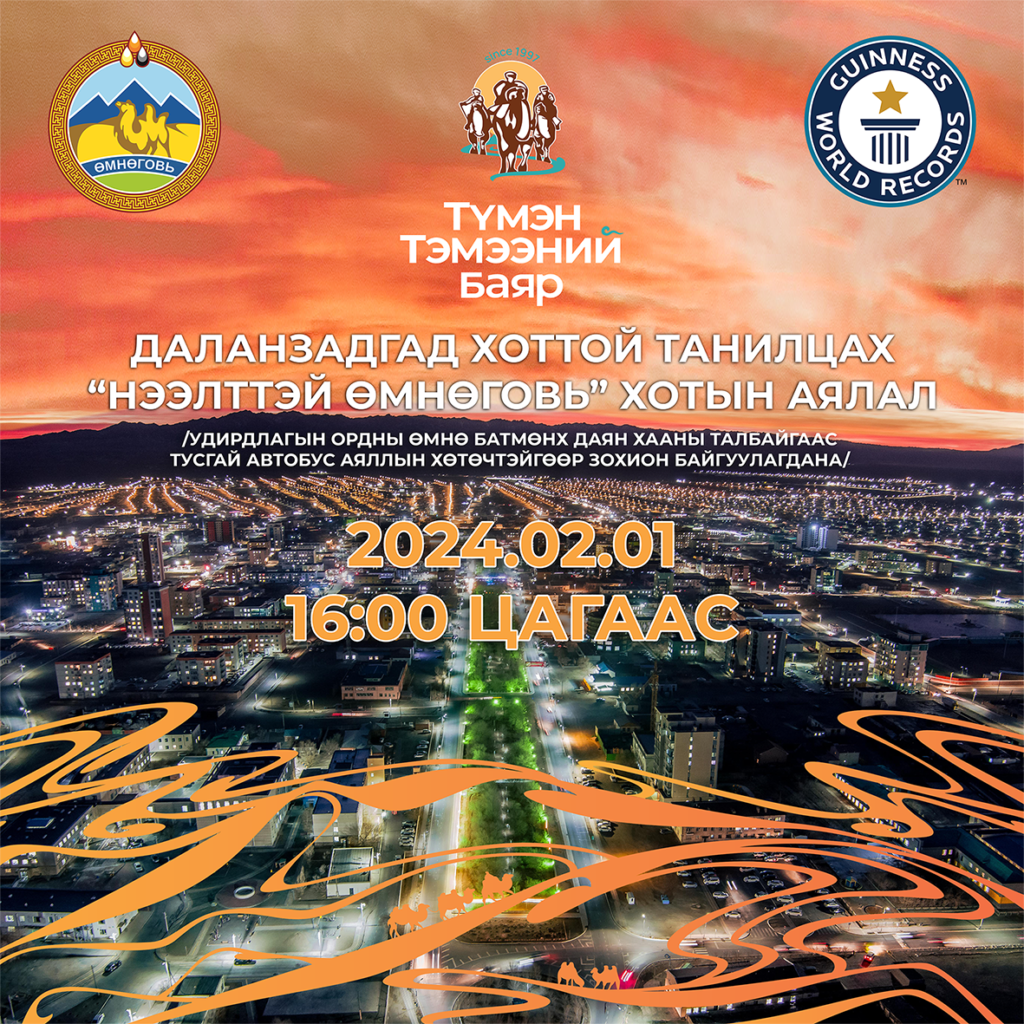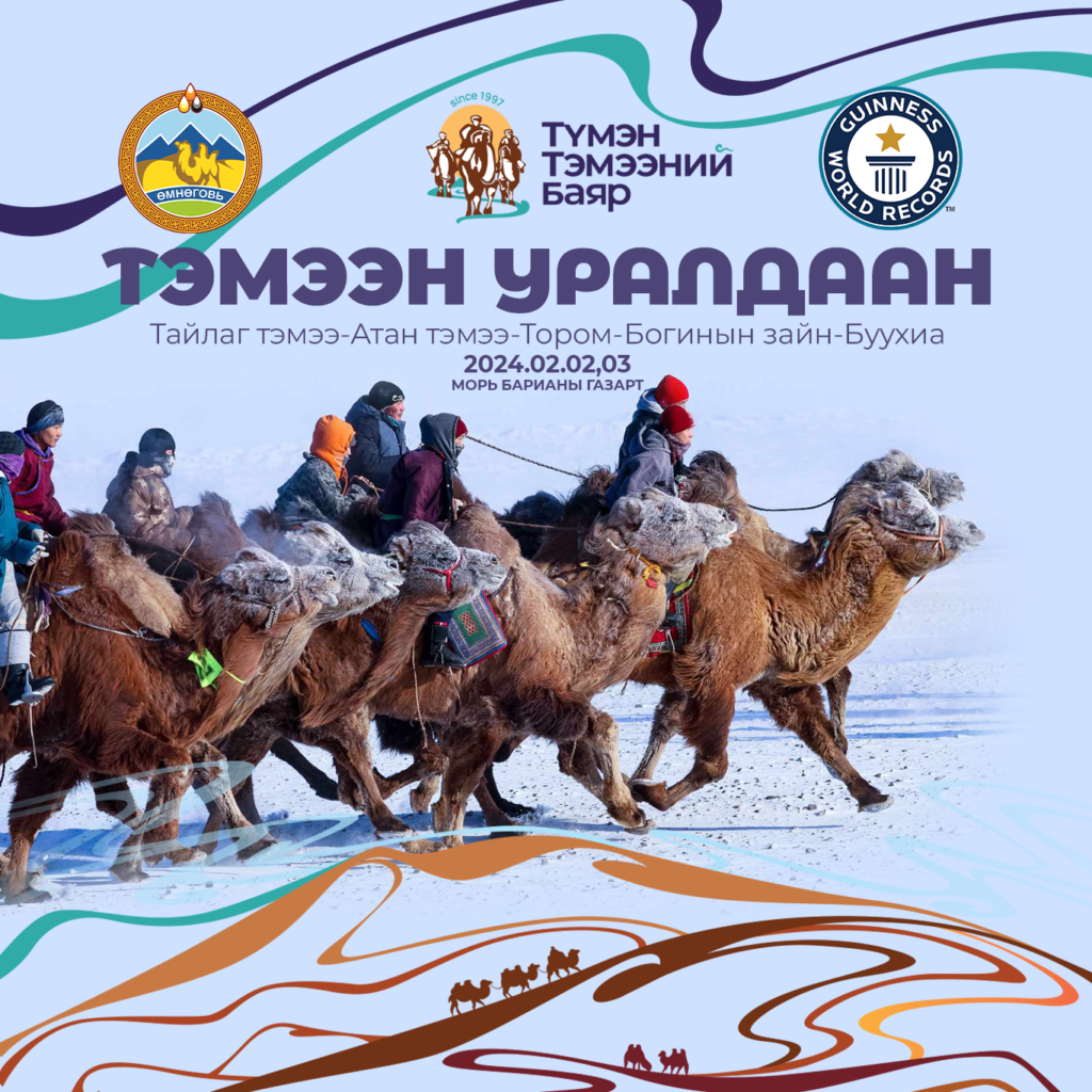 Өвлийн аялал жуулчлалын анхны эвент үйл ажиллагааны нэг болсон “Түмэн тэмээний баяр 2024” уламжлал 25 дахь жилдээ Өмнөговь аймаг Даланзадгад хотноо 2024 оны 02 дугаар сарын 1-3 өдрүүдэд зохион байгуулагдана.