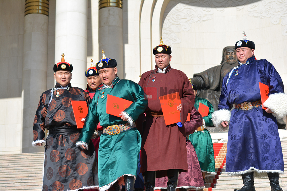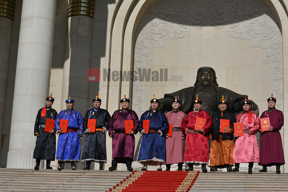 Монгол Улсын Ерөнхийлөгч Ухнаагийн Хүрэлсүх Үндэсний Их баяр наадмын тухай хуулийн 10 дугаар зүйлийн 10.4, 10.7, 10.9 дэх хэсэг, мөн хуулийн 12 дугаар зүйлийн 12.4, 12.5 дахь хэсэгт заасан болзол хангасан уяач, шагайн харваачдад улсын цол олголоо.