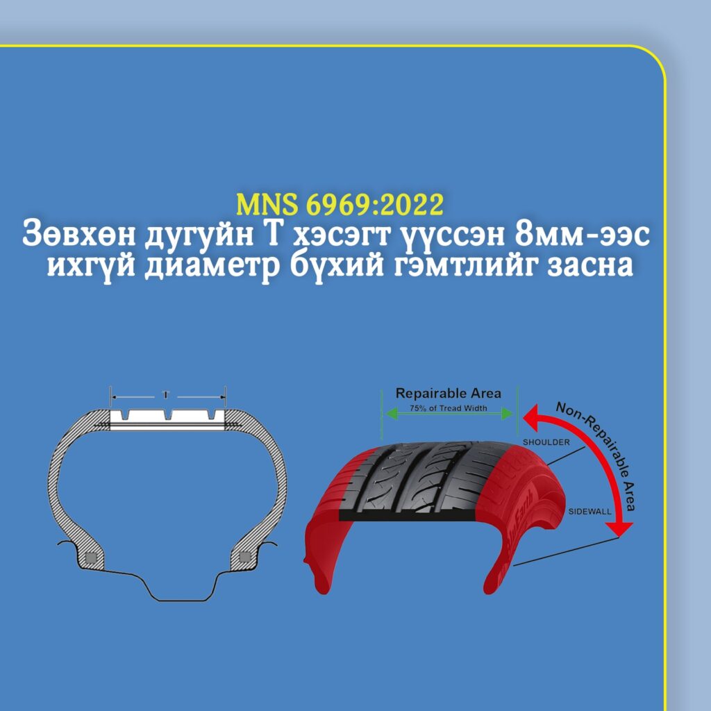 MNS 6969:2022 Тээврийн хэрэгслийн резин дугуй засварын үйлчилгээ.