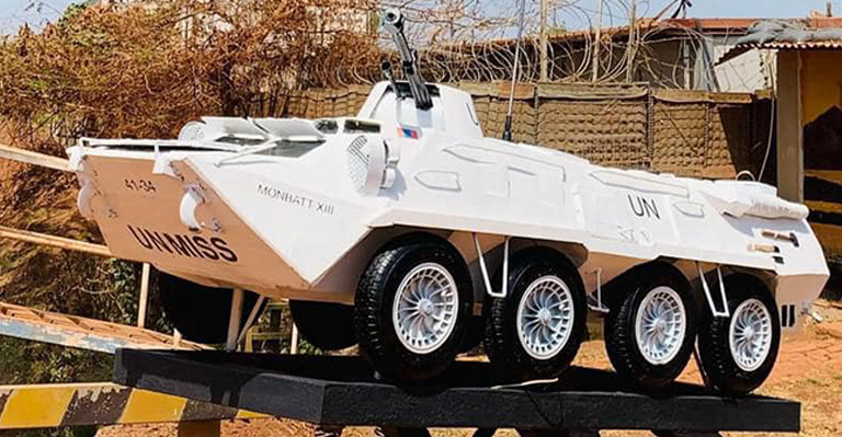 БНӨСУ-д үүрэг гүйцэтгэж байгаа энхийг сахиулагчид өөрсдийн хөлөглөдөг үндсэн зэвсэглэл техник болох БТР-80 хуягт тээвэрлэгчийн дурсгалын загварыг бүтээж, МОНБАТТ-ынхаа угталтын хаалга дээр байрлуулан олноо толилуулсан байна.