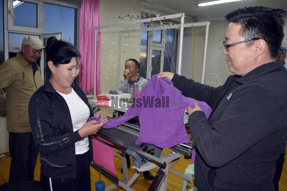 Монгол хонины ноосны ач холбогдол их. Сумын сургуульд сурч байгаа хүүхдүүд малчдын хүүхдүүд. Бидэнд малчид маань ноосоо бэлдээд өглөө, харин бид утас болгон боловсруулаад өгнө. Та бүхэн эндээ ноосон цамцыг үйлдвэрлээд хүүхдүүддээ өмсүүлчихнэ. Ийм л зүйл Монгол улсад хэрэгтэй. Сайн байна. Одоо энэ жижиг цехэнд угаалгын машин, уурын индүү хэрэгтэй юм байна. Бид та бүхэнд хэрэгтэй нэхмэлийн технологийн картыг өгнө. Ажлыг нь дэмжиж үйлдвэртээ сургалтад хамруулах бүрэн боломжтой. Цаашдаа орон нутагт жишиг нэхмэлийн цех болгон өргөжүүлэх талаар хамтран ажиллая.