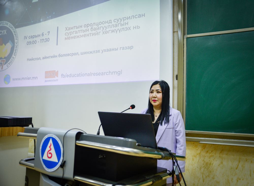 | “ХАМТЫН ОРОЛЦООНД СУУРИЛСАН СУРГАЛТЫН БАЙГУУЛЛАГЫН МЕНЕЖМЕНТИЙГ ХӨГЖҮҮЛЭХ НЬ” сэдэвт ЕБС-ын 2024 оны үндэсний эрдэм шинжилгээний хуралд шагналт байр эзэлсэн илтгэлийн мэдээлэл | |||