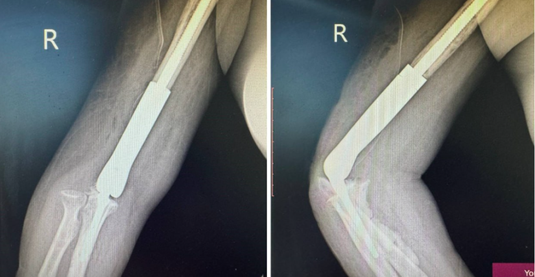 Уг мэс засал нь авто ослын дараах атгаалын чөмөгт ясны доод хэсэг бяцарч, үйрмэг мэт болон хугарч, эргэн сэргэшгүй болж дутмагшил үүссэн (10см орчим) ясыг орлуулах, үеийг орлуулсан, нийлмэл тохойн хиймэл үе бүхий имплантыг суурилуулан гарын хөдөлгөөнийг бүрэн сэргээж, амьдарлын чанарыг сайжруулах мэс засал эмчилгээ юм.