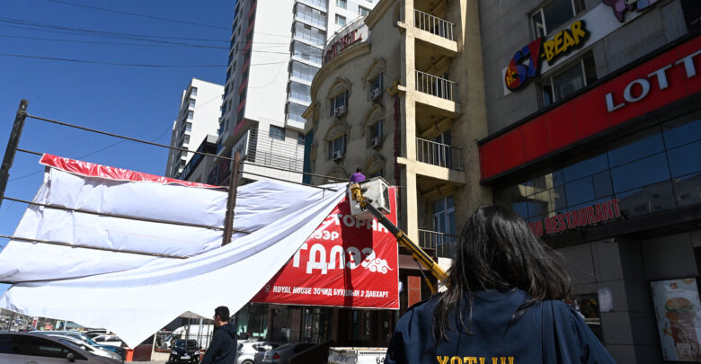 Зөвшөөрөлгүй хайс хашаа, сурталчилгааны самбарыг буулгаж байна
