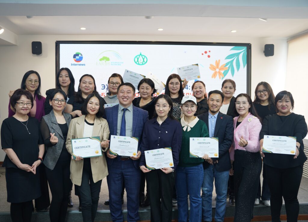 Интерньюс хөтөлбөрийн дэмжлэгтэй Байгаль орчны сэтгүүлчдийг чадавхжуулах хөтөлбөрийн олон улсын гэрчилгээ гардуулах ёслол боллоо. Өнгөрсөн оны 6 сарын 21-нд нээлтийн сургалтаа хийж байсан оролцогчид нэг жилийн хугацаанд 4 удаагийн воркшоп сургалт, 4 удаагийн байгаль орчны сэдэвт хэлэлцүүлэг зохион байгуулж, сургалтаар олж авсан мэдлэгээрээ байгаль орчны асуудал хөндсөн бүтээл хийж эх дэлхийн өдрөөр гэрчилгээгээ гардан авлаа. Хөтөлбөрт оролцогчдын бүтээл асуудал хөндөж, хөндсөн асуудлын мөрөөр төр засгийн бодлого шийдвэрт нөлөөлсөн бахдам амжилттайгаар оролцогчид хөтөлбөрөө дүүргэж байна.