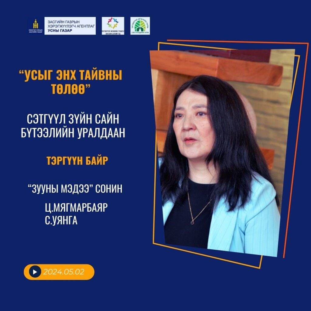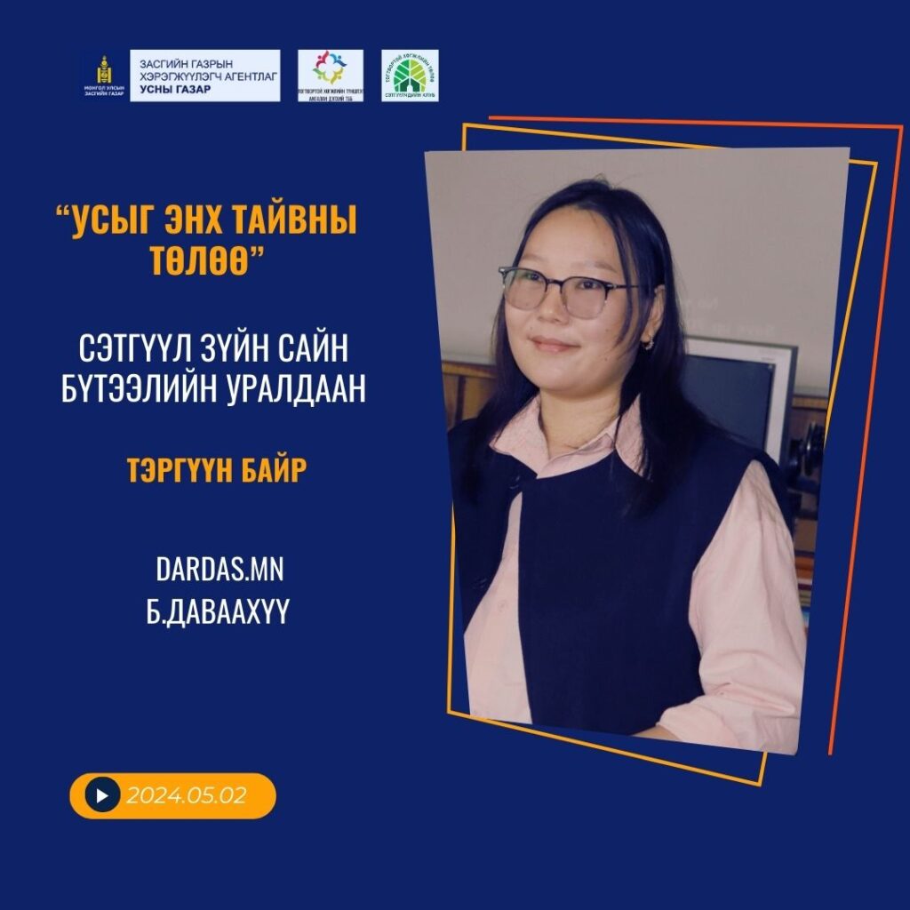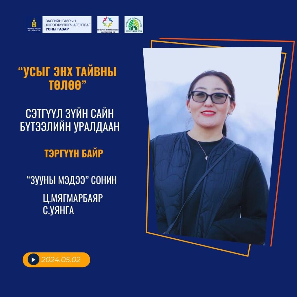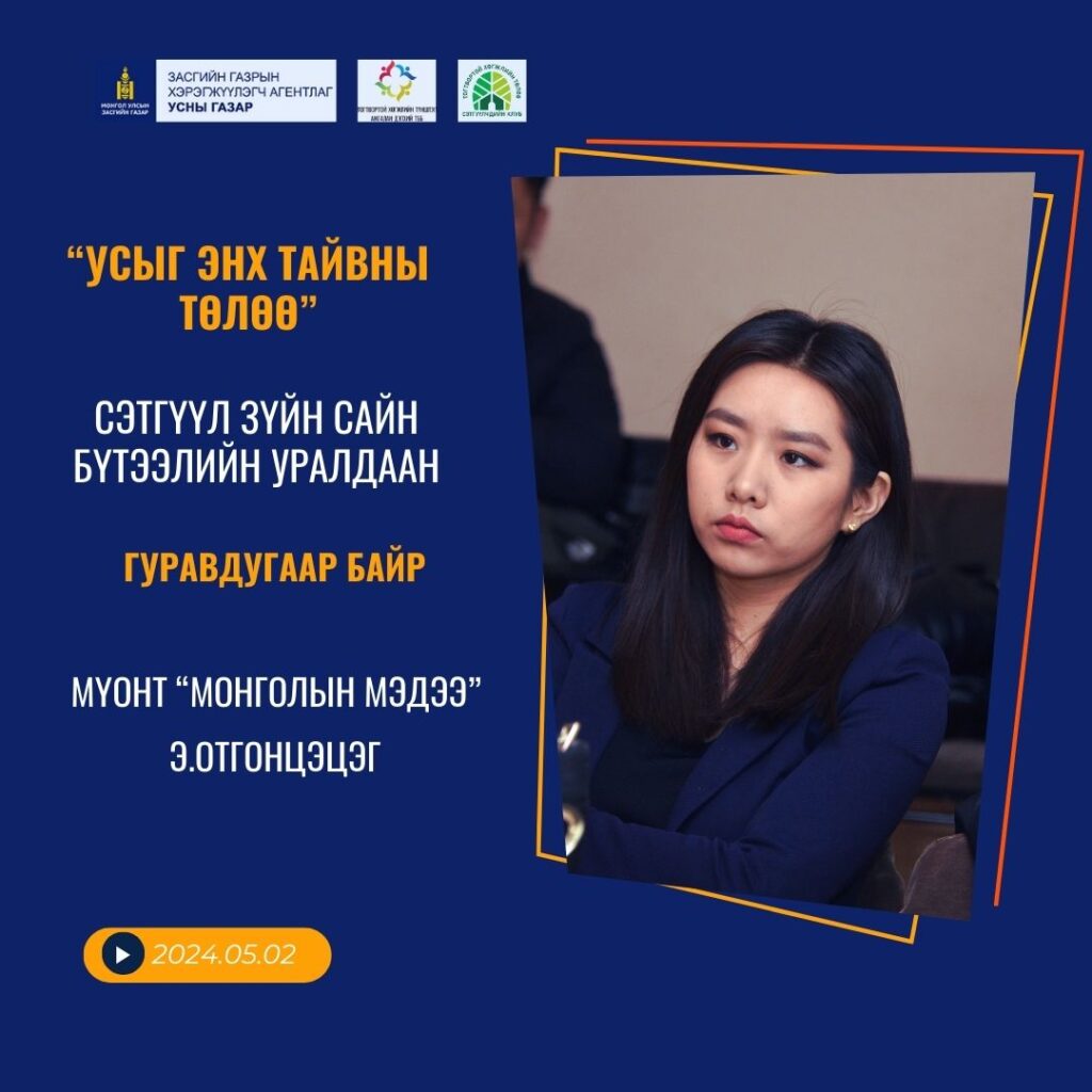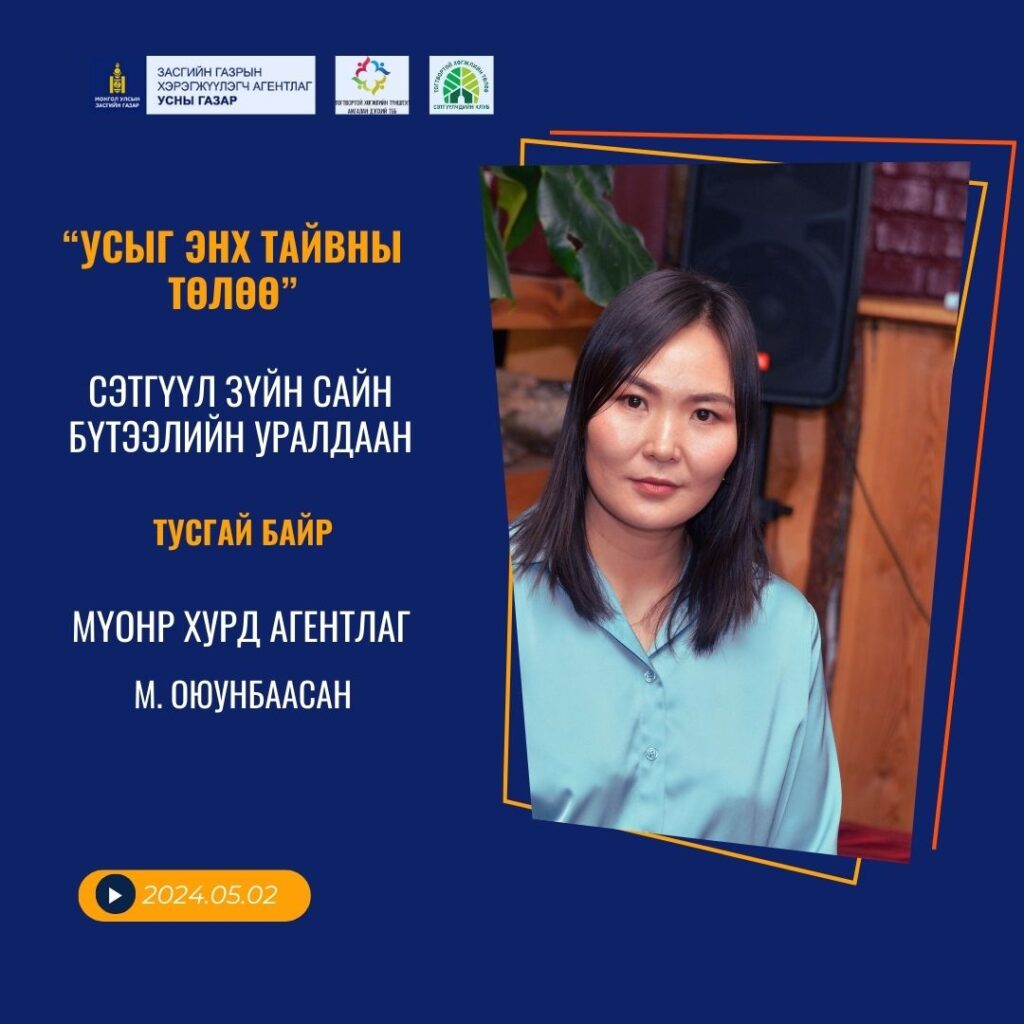 ЗГХА Усны газар, “Амгалан дэлхий” ТББ хамтран дэлхийн усны өдрийг тохиолдуулан “Усыг энх тайвны төлөө” сэдвийн хүрээнд сэтгүүл зүйн сайн бүтээлийн уралдааныг 03 сарын 10-наас 04 сарын 25-ны өдрүүдэд зохион байгуулж, өнөөдөр дүнгээ танилцууллаа.