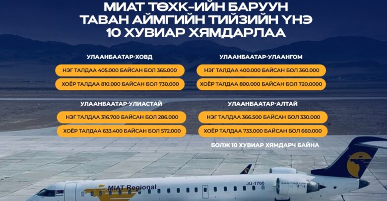 ХЯМД ТИЙЗ-ХҮРТЭЭМЖТЭЙ НИСЛЭГ зорилтын хүрээнд орон нутгийн нислэгийн тийзийг дахин 10 хувиар хямдрууллаа.