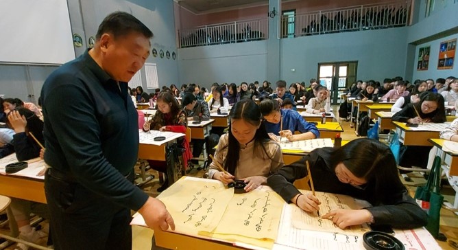ӨМӨЗӨ-ны Ордос хотын шатрын холбооны тэргүүн, Гавьяат багш П.Вандэнбуу,“Монгол угсаатны өв соёл болох босоо Монгол бичгийг монголчууддаа өвлөн уламжлуулах зорилгоорНЕБ-ын 153 дугаар сургуулийн сурагчид болон багш нарт Бийрэн бичлэгийн анхан шатны сургалтыг явууллаа. Монгол хүүхдүүдийн сурахуйн ухаан, авьяас чадвар нь гайхамшигтай. Тэд маш хурдан сурдагаар онцлогтой юм. Нэг сар бичиж сурдаг арга барилыг 8 хоногт бүрэн эзэмшиж буй нь бахархалтай” хэмээн ярилаа.