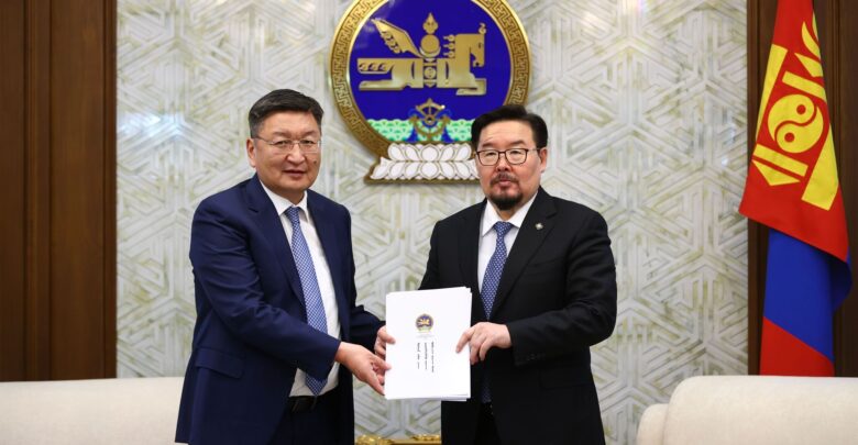 Монгол Улсын Ерөнхийлөгчийн санаачлан боловсруулсан Олон хүүхэд төрүүлж өсгөсөн эхийг урамшуулах тухай болон Төрийн бэлгэ тэмдгийн тухай хуульд нэмэлт оруулах тухай хуулийн төслийг Ерөнхийлөгчийн Тамгын газрын дарга Я.Содбаатар УИХ-ын дарга Г.Занданшатарт /2024.05.13/ өргөн барилаа.