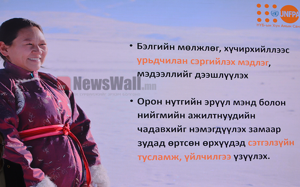 Тэгвэл НҮБ-ын Хүн амын сан нь зудад өртсөн эмэгтэйчүүд тэр дундаа жирэмсэн болон хөхүүл эмэгтэйчүүд, дотуур байранд амьдарч байгаа өсвөр насны охид зэрэг нийт 4,000 эмэгтэйчүүдэд Эрүүл ахуй, ариун цэврийн багц тараах юм. Байгалийн гамшиг, онцгой байдлын аюулд өртсөн охид, эмэгтэйчүүд өөрийн оршин суугаа орон нутагтаа сэтгэцийн эрүүл мэнд, сэтгэл зүйн дэмжлэг, зөвлөгөө авах боломжийг бүрдүүлсэн “Аюулгүй орон зай”-г таван аймгийн таван сумдад бий болгоход НҮБ-ын Хүн амын сангийн дэмжлэг мөн чиглэнэ.