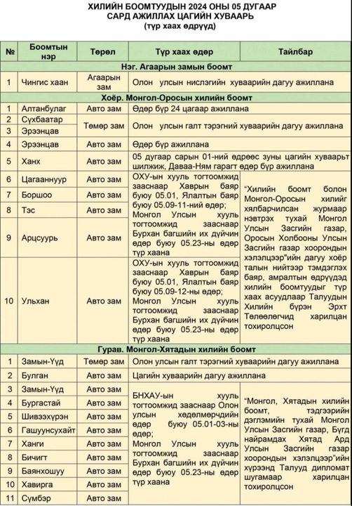 Авто замын боомт болох Замын-Үүд, Сүмбэр, Баянхошуу, Бичигт зэрэг 14 боомт Бурхан багшийн их дүйчин өдөр буюу 2024 оны 5 дугаар сарын 23 -нд түр хаагдах юм.