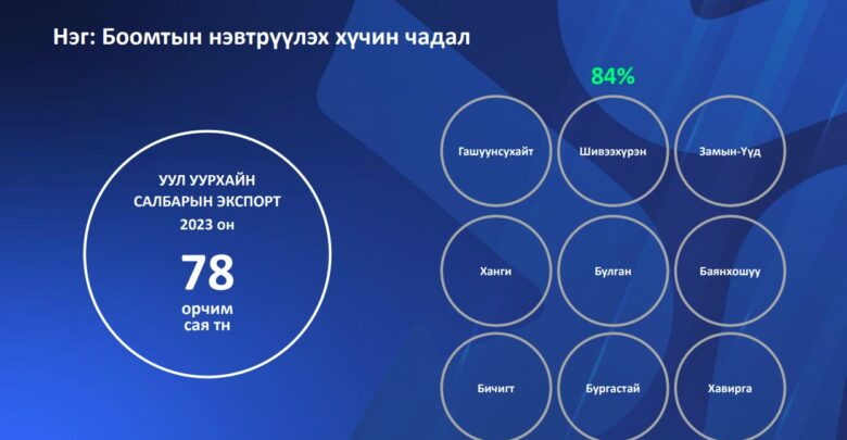 Өнгөрсөн оны байдлаар уул уурхайн бүтээгдэхүүний нийт экспортын 84 хувийг Автозамын 12 боомтоор гаргасан байна.