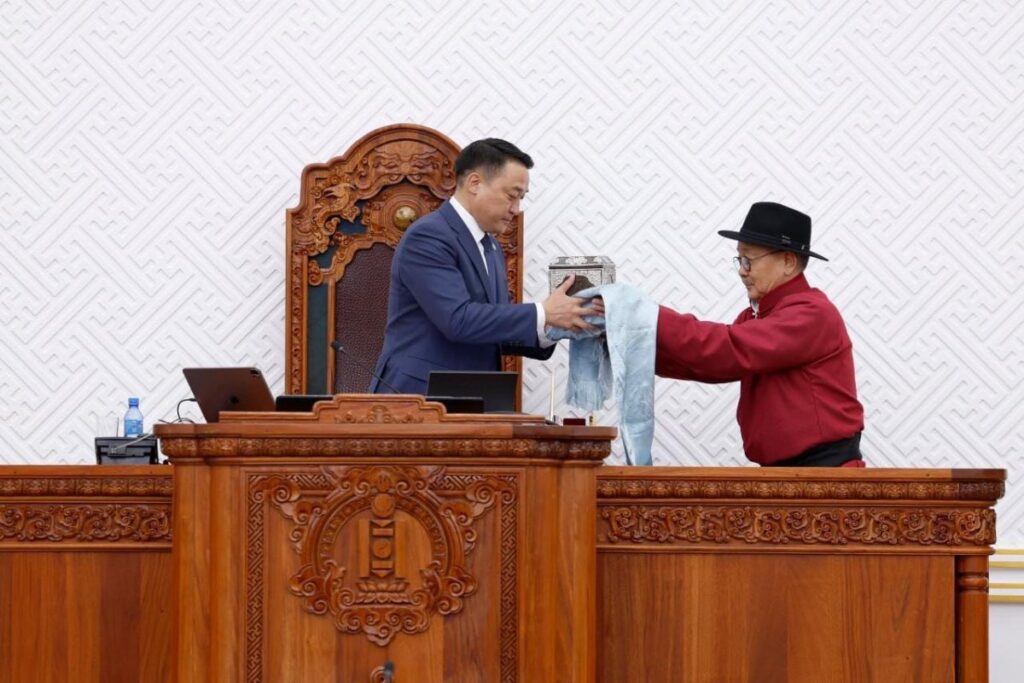 Шинээр сонгогдсон УИХ-ын дарга Д.Амарбаясгалан УИХ-ын тамгыг хүлээн авсны дараа анхдугаар хуралдаанд үг хэлэхдээ: