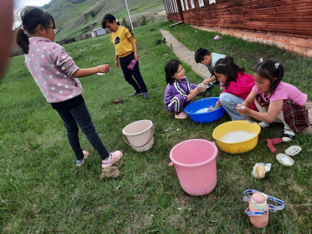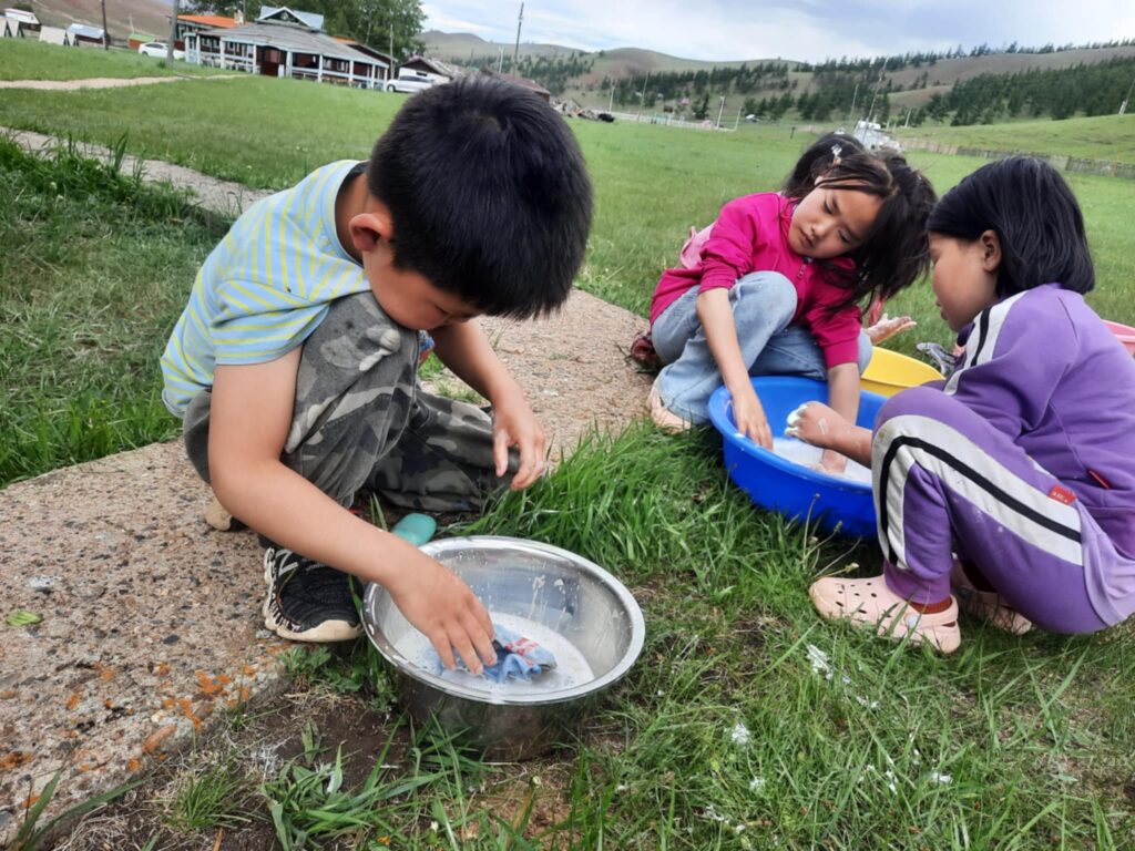 -Тийм ээ. “Урандөш” зуслангийн 6-10 насныханд жижиг хувцас хэрэглэлээ өөрөө угаахад нь сургаж байгаа юм. Оймсоо хэрхэн сайн угаах, зөв мушгих, хатаах гээд жижиг гэлтгүй аргыг насанд нь тохируулан зааж байна. Хамт угаах, хэн нь сайн өнгө оруулснаа харах, уралдах гээд багачуудад их сонирхолтой байдаг. Аав ээжүүд нь ч дуртай.
