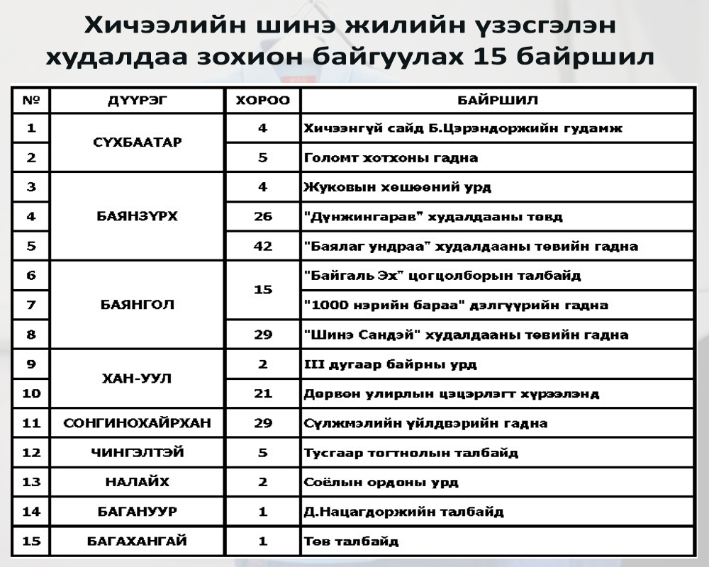 2024-2025 оны хичээлийн шинэ жилийг угтан сурагч, оюутан, эцэг, эхчүүдэд ойрхон, хүртээмжтэй, харьцангуй хямд үнээр хичээлийн хэрэгсэл, дүрэмт хувцас, шаардлагатай бусад хэрэгслийг худалдан авах боломжийг бүрдүүлэх зорилгоор хичээлийн үзэсгэлэн худалдааг 2024 оны наймдугаар сарын 1-ний өдрөөс 15 байршилд зохион байгуулж байна.