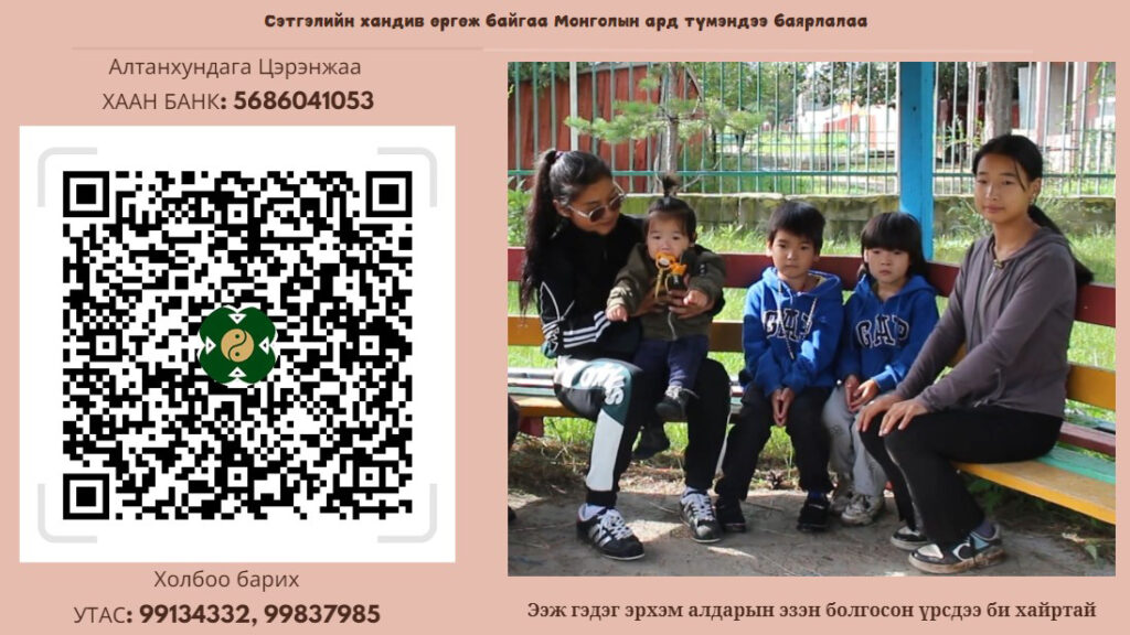 Тусламжийн гараа сунгаж байгаа болон бидний нийтлэлийг уншаад “1000 төгрөг” хандивийн аянд нэгдэх халуун сэтгэлтэй хайр дүүрэн зүрхтэй Монгол түмэн минь та бүхэндээ баярлалаа. Хайр, талархал дүүрэн амьдралын он жилүүд нь гэгээн дардан байж, эрүүл энх, урт удаан наслахын ерөөл өргөе.