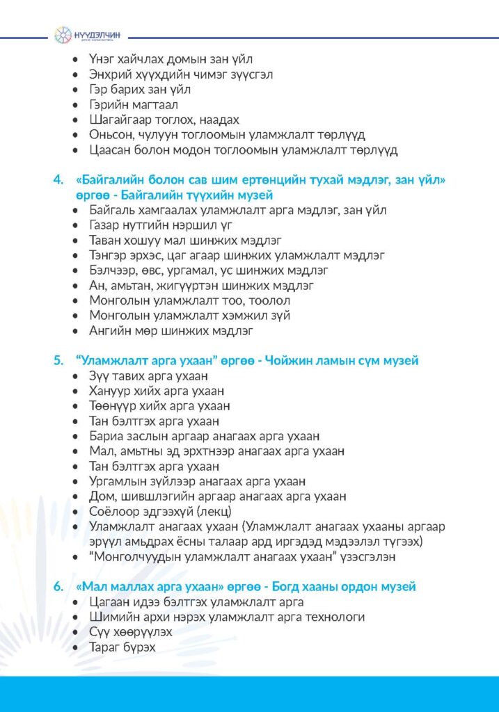 Нүүдлийн соёлын хосгүй илэрхийлэл болсон соёлын биет болон биет бус өв нь хүн төрөлхтний түүхийн уртад Монголчуудын соёлын дахин давтагдашгүй байдал, байгаль, цаг уур, газарзүйн онцлогтой уялдан үеэс үед өвлөн уламжлагдаж хөгжил дэвшлийн нэгэн илэрхийлэл болсоор байна. Гэсэн хэдий ч соёлын биет бус өвийг хадгалж хамгаалах асуудал хүн төрөлхтний өмнө нэн тулгамдсан зорилтын нэг болж, дэлхий нийтийн анхаарлын төвд ороод байна.