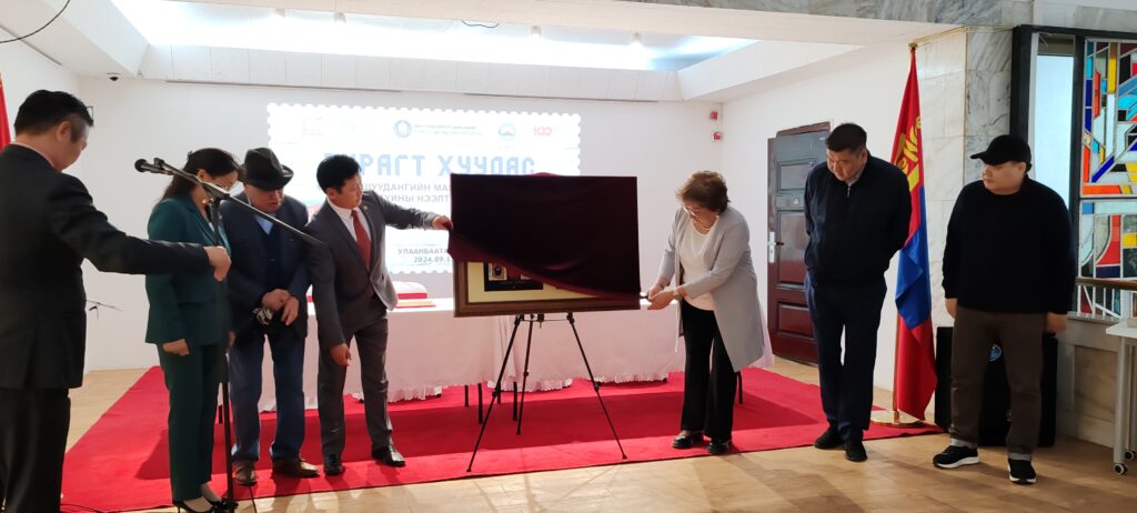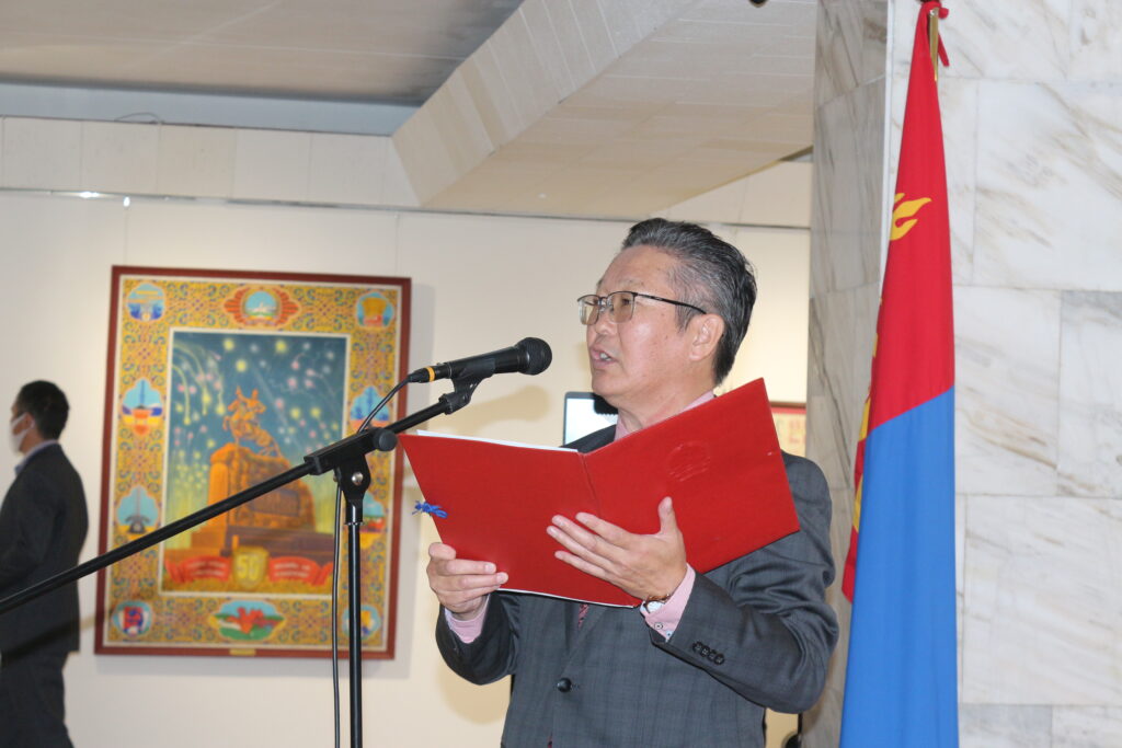 Нээлтийн ёслолд Монгол шуудан ХК-ийн марк, үнэт цаасны хэлтсийн дарга Б.Дамдинбазар, ШУА-ийн Түүх, угсаатны зүйн хүрээлэнгийн эрдэмтэн, нарийн бичгийн дарга, доктор Ц.Энхчимэг, Монголын уран зургийн Галерейн захирал М.Отгончимэг, Монголын театрын музейн захирал, профессор доктор Д.Наранжаргал, Монгол Улсын Урлагийн гавьяат зүтгэлтэн Ц.Мөнхжин, Монгол Улсын Соёлын гавьяат зүтгэлтэн С.Цогтбаяр тэргүүтэй холбогдох албаныхан оролцов.