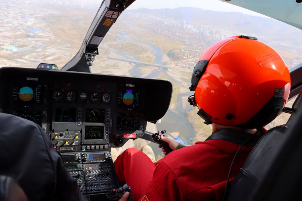 ГССҮТ-ийн эмч мэргэжилтнүүд Агаараас эрэн хайх, аврах ажиллагааны явцад өвчтөн тээвэрлэх үзүүлэх сургалтыг сонирхож, нисгэгч сургах симулятор буюу дадлага сургалтад хамрагдан, осол гэмтлийн үед иргэдэд үзүүлэх яаралтай тусламж, үйл ажиллагааны нэгдмэл чанаруудын талаар мэдлэг туршлагаа нэмсэн юм.