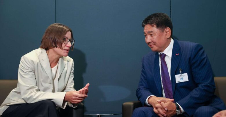 НҮБ-ын Ерөнхий Ассамблейн 79 дүгээр чуулганд оролцож буй Монгол Улсын Ерөнхийлөгч Ухнаагийн Хүрэлсүх 2024 оны 09 дүгээр сарын 24-ний өдөр Олон улсын улаан загалмай хороо (ОУУЗХ)-ны Ерөнхийлөгч Мирьяана Эггерийг хүлээн авч уулзлаа.