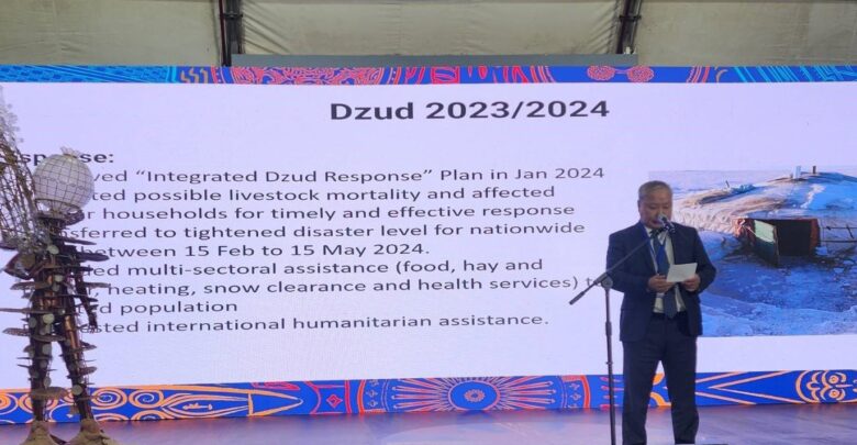 Өнгөрсөн 2023-2024 оны өвөл тохиолдсон зуднаар Монгол Улсын Засгийн газраас НҮБ-ын агентлагууд, олон улсын болон үндэсний хүмүүнлэгийн байгууллагуудаас бүрдсэн Хүмүүнлэгийн тусламжийн баг малчдыг болзошгүй эрсдэлээс урьдчилан сэргийлэх, даван туулахад шаардлагатай дэмжлэг тусламж үзүүлж, хамтран ажилласан бөгөөд зудад нэрвэгдсэн малчдад нэн шаардлагатай дэмжлэг үзүүлж, зудын эрсдэлд өртсөн малчин өрхүүдэд хоол хүнс, эм, эрүүл мэндийн тусламж үйлчилгээ, түлээ, нүүрс, бэлэн мөнгөний тусламж зэрэг нэн шаардлагатай тусламжийг үзүүлсний зэрэгцээ зудын эрсдэлийг бууруулж, хохирол багатай даван туулах талаар авсан арга хэмжээнүүдийг танилцуулан, сайн туршлага хуваалцлаа.