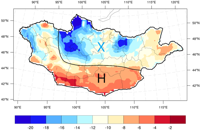 Говийн аймгуудын нутгаар. Энэ сард агаарын дундаж температур Говьсүмбэрийн нутаг, Дундговь, Дорноговийн хойд хэсгээр олон жилийн дунджаас хүйтэн, бусад нутгаар дунджийн орчим, хур тунадас Дорноговийн нутаг, Дундговийн зүүн өмнөд, Өмнөговийн зүүн хэсгээр олон жилийн дунджаас ахиу, бусад нутгаар дунджийн орчим байх төлөвтэй байна. Нэгдүгээр арав хоногийн эхэн, гуравдугаар арав хоногийн эхэн үеүдэд олон жилийн дунджаас 1-3°С хүйтэн, харин нэгдүгээр арав хоногийн дунд, гуравдугаар арав хоногийн сүүл үеүдэд олон жилийн дунджаас бага зэрэг дулаан байна. Хур тунадас нэгдүгээр арав хоногийн дунд болон сүүл, хоёрдугаар арав хоногийн дунд болон сүүл үеүдэд цас орж, зарим газраар цасан шуурга шуурч болзошгүй байна.