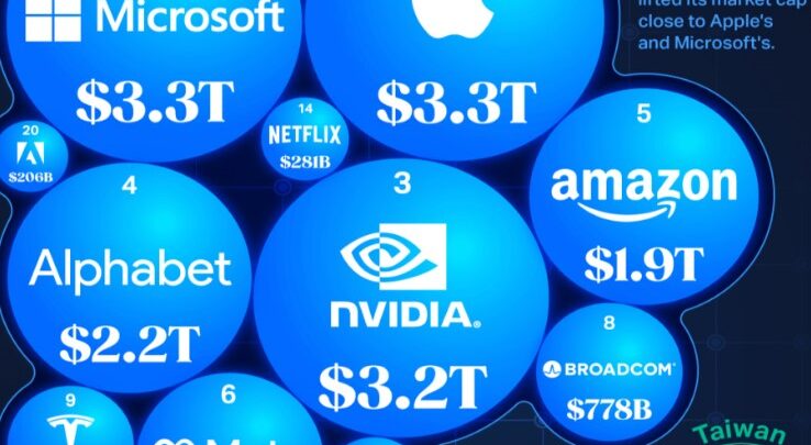 Хиймэл оюуны хэрэглээ өсөн нэмэгдэхийн хэрээр “Apple”, “Microsoft”, “Alphabet”, “Amazon”, “Nvidia”, “Meta” компанийн хувьцаа эрэлт ихтэй байна. Эдгээр компанийг технологийн салбарын “Их-6” хэмээн нэрийдэх болжээ.