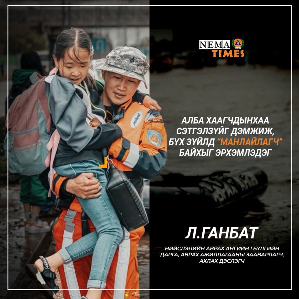 Хүн бүрийн мөрөөдлийн гүүр өөр, өөрийн гэсэн замналтай. Түүнийгээ өөрөө хэрхэн бүтээхээс хамаарч, амжилтын буухиаг үргэлжүүлдэг онцлогтой. Албандаа чин сэтгэлтэй, өөрийн гэсэн үзэл бодол, чадвартай залуусын төлөөлөл түүнийг энэ удаагийн Nematimes булан онцоллоо. Түүнийг Лхагвасүрэнгийн Ганбат гэдэг. Нийслэлийн Аврах ангийн I бүлгийн дарга, аврах ажиллагааны зааварлагчаар ажиллаж байгаа ахлах дэслэгч цолтой алба хаагч юм.