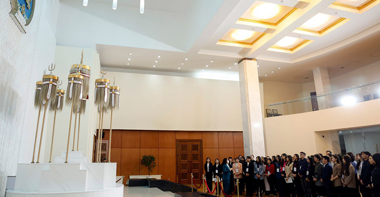 Төрийн ордон 1951 онд ашиглалтад орох үед эдүгээгийн Улсын Их Хурлын чуулганы нэгдсэн хуралдааны танхим кино театр байснаас эхлэн Монгол Улсад байнгын ажиллагаатай парламент анх байгуулагдсан үе, 2024 оны ес дэх сонгуулиар бүрдсэн Улсын Их Хурал 126 гишүүнтэй болсон хүртэлх үеийн түүхийг Ерөнхий нарийн бичгийн дарга товч өгүүлж, тус танхимд Улсын Их Хурал дахь намын бүлгийн гишүүд, бүлэггүй намуудын төлөөлөл хэрхэн сууж ажилладгийг оюутнуудад тайлбарлав. Улсын Их Хурлын 2024 оны ээлжит сонгуулийн үр дүнд улс төрийн таван нам, эвсэл парламентад суудал эзлэх болсныг тэрбээр онцлоод, урьд өмнөхөөс олон намын төлөөллөөс бүрдсэн парламент учир Улсын Их Хурлын үйл ажиллагаа, хууль тогтоомжийн төслийн хэлэлцүүлэг илүү олон үзэл, хандлагаар өрнөж батлагдах боломж бүрдсэнийг тэмдэглэлээ.