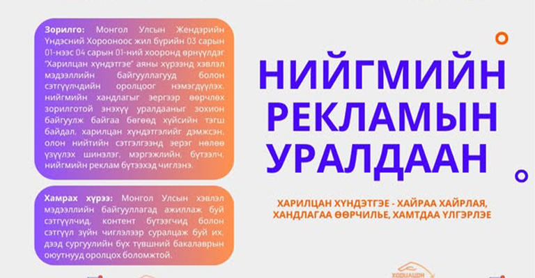 -НИЙГМИЙН РЕКЛАМЫН УРАЛДААНД ОРОЛЦОХЫГ УРЬЖ БАЙНА-
