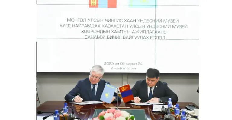 Монгол Улсын Чингис хаан Үндэсний музей, Бүгд Найрамдах Казахстан Улсын Соёл, спортын яамны Соёлын хорооны улсын төсөвт байгууллага болох БНКазУ-ын Үндэсний музей хооронд хамтран ажиллахаар тогтов.