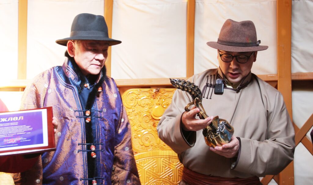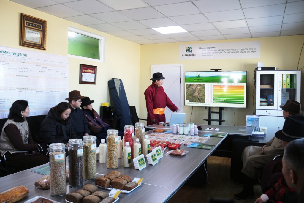 Хүнс, хөдөө аж ахуй, хөнгөн үйлдвэрийн яамны Төрийн нарийн бичгийн дарга Т.Жамбалцэрэн Сэлэнгэ аймгийн Баянгол сумын “Шанддов” ХХК-д “Улсын аварга тариаланч хамт олон”-ы шагналыг /2025.02.25/ гардууллаа.