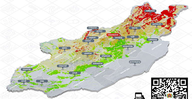 Онцгой байдлын ерөнхий газраас Азийн хөгжлийн банкны дэмжлэгтэйгээр Ядуурлыг бууруулах Японы сангийн санхүүжилтээр “Гамшгийн эрсдэлийн үнэлгээ, төлөвлөлт болон эрсдэл шилжүүлэх чадавхыг бэхжүүлэх” техник туслалцааны төслийг хүрээнд Монгол Улсад зонхилон тохиолддог гамшгийн 10 төрлөөр эрсдэлийн үнэлгээ хийж, нийт 1500 орчим зураглалыг боловсруулсан. Тус төслийн хүрээнд боловсруулсан “Монгол орны ой, хээрийн түймрийн эрсдэлийн үнэлгээ”-г танилцуулж байна.