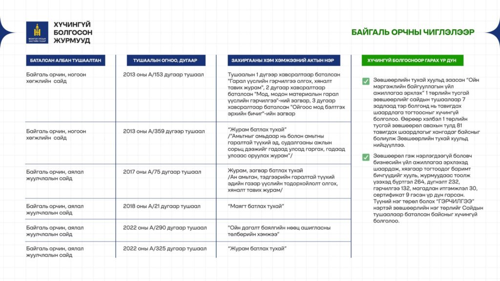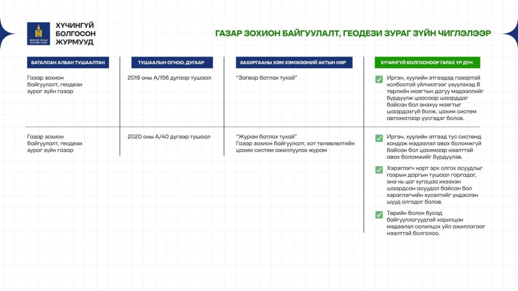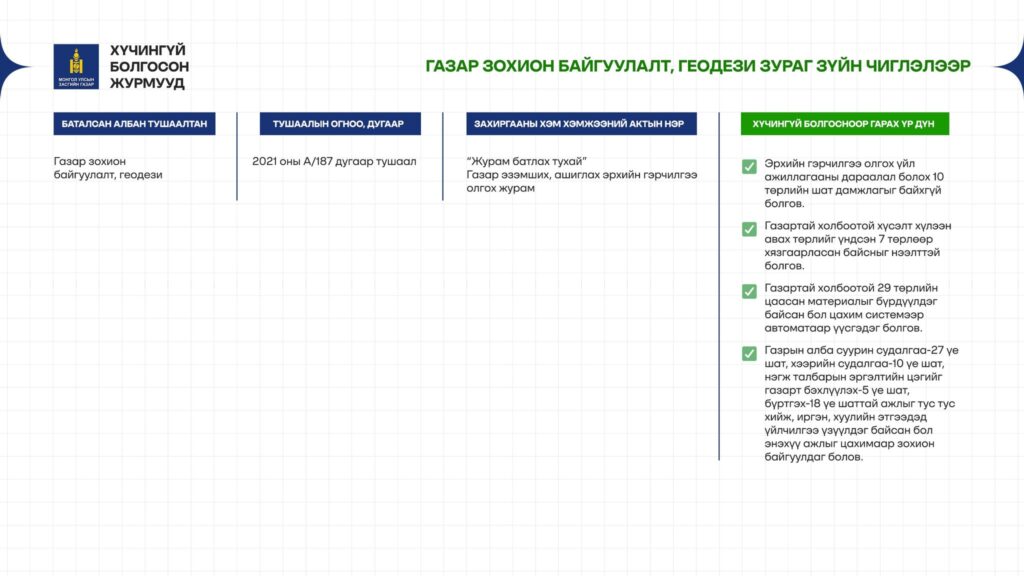 - 4 журам – Газрын салбарт