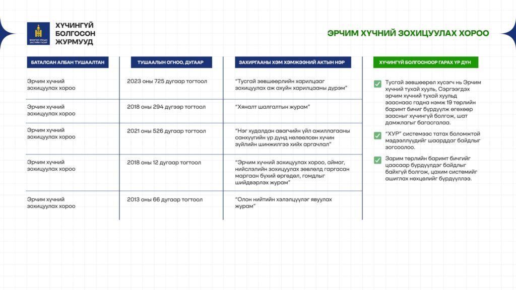 Хууль давсан 50 журмыг цуцалсаны гол үр дүнг нэгтгэвэл