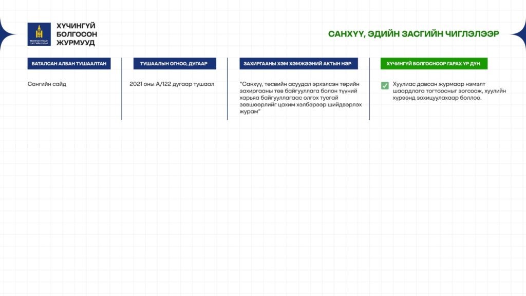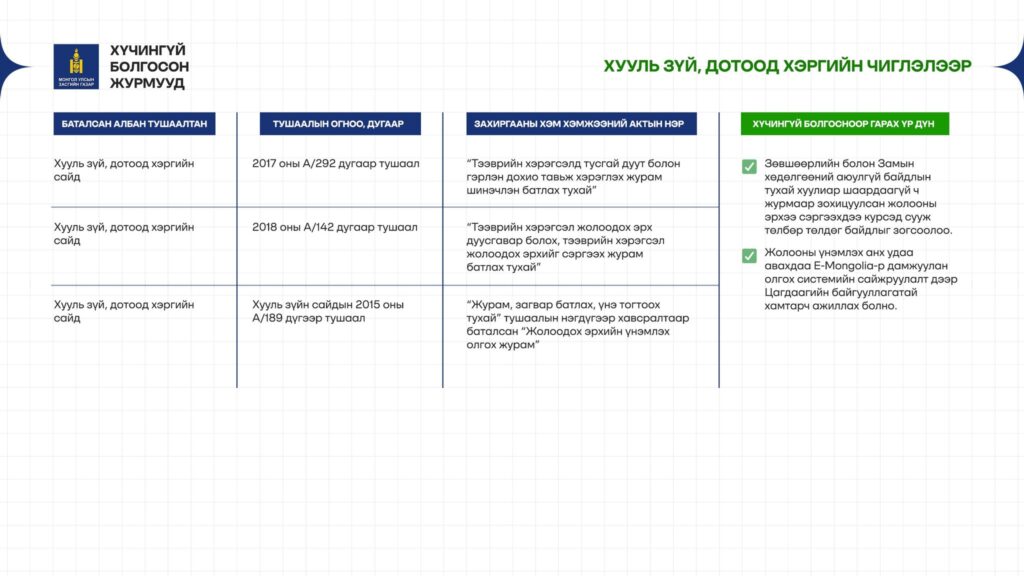 - Журмаар иргэдийн боломжийг хаадаг биш, хуулийн хүрээнд боломжийг нээдэг болов.