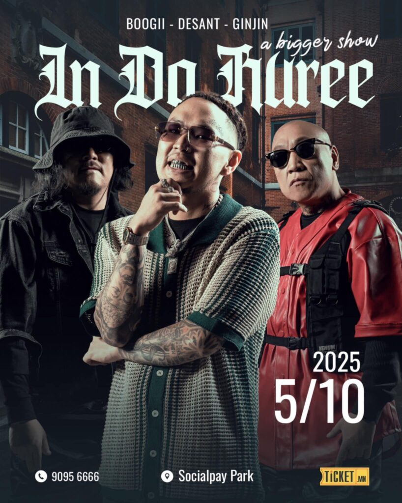 Монголын хип хоп ертөнцийн томоохон төлөөлөгчдийн нэг болох “Ice top” хамтлагийн Boogii болон реппер Desant, реппер Ginjin нар хамтран “In Da Huree” тоглолтоо зохион байгуулах гэж байна.